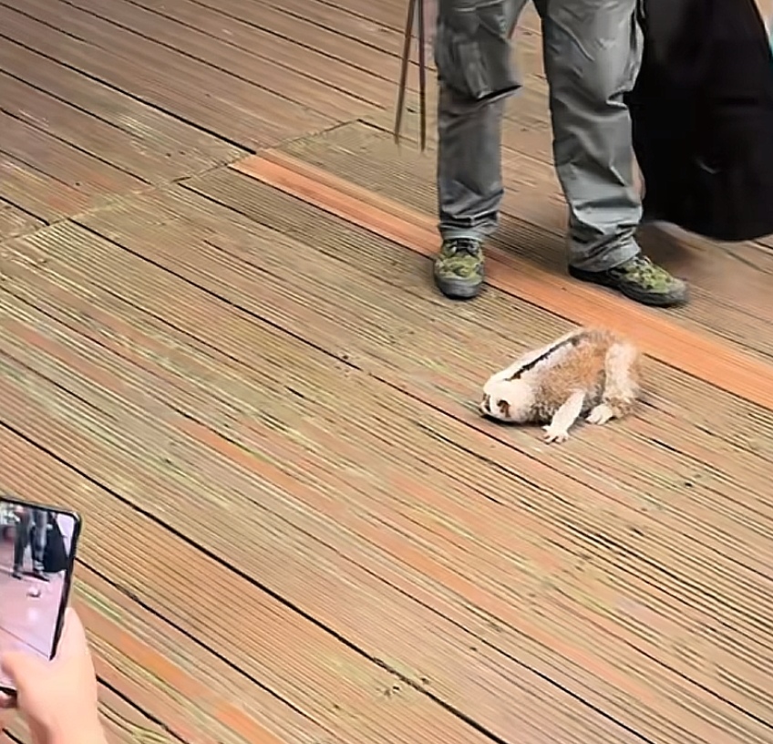 记者在该网友发布的视频上看到,掉落在地的蜂猴看上去“楚楚可怜”,趴在地上一动不动。景区工作人员疑似已经赶到现场,守护在蜂猴身边。而据发帖网友介绍,蜂猴被送回树上后还吓得不自主排尿,当时现场围观游客都很气愤。