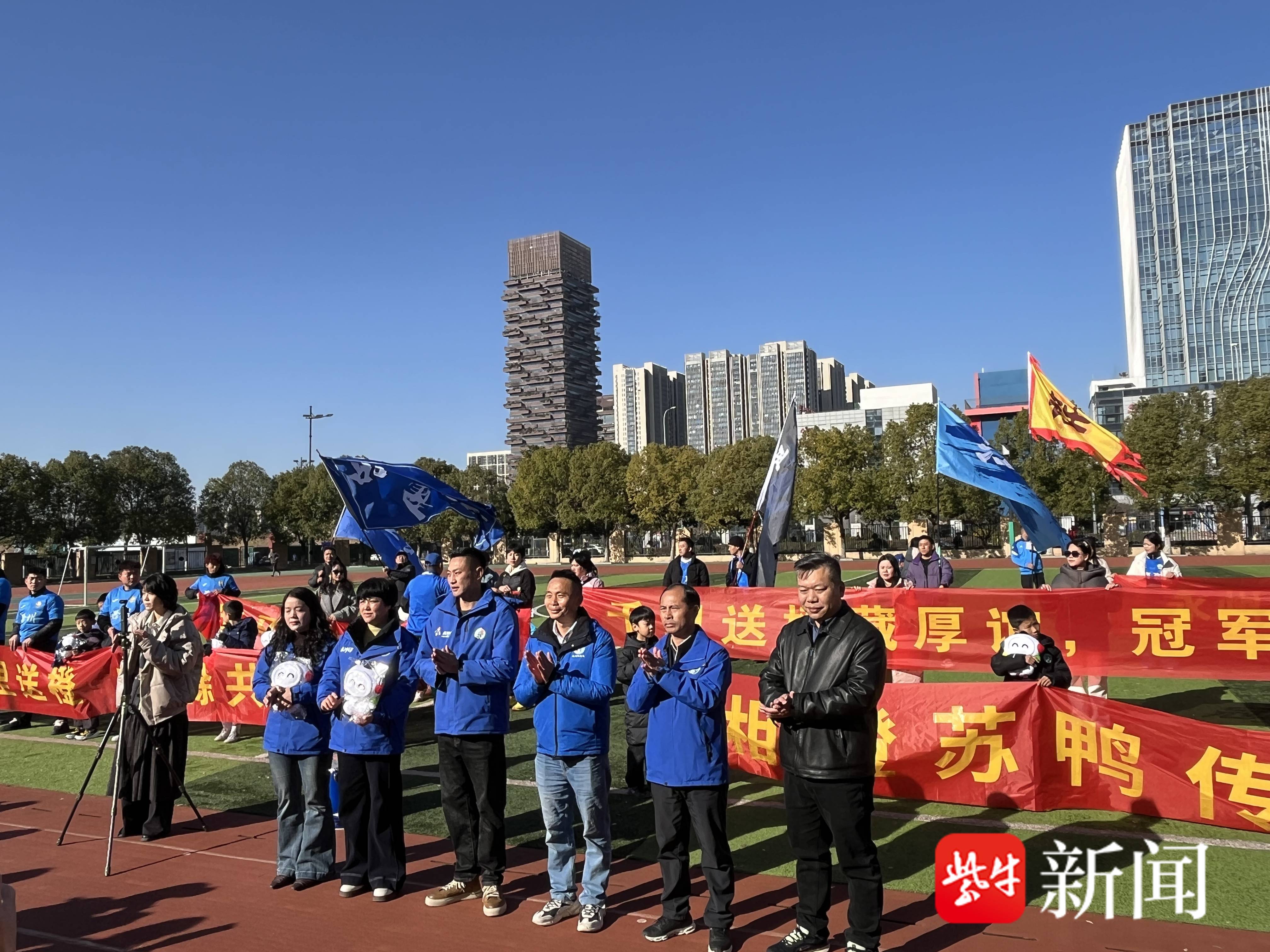 1月11日上午,在南京市第一中学江北新区分校,近百名球迷在这里热情迎接永州送橙车队和人员的到来。随着车队的抵达,人群沸腾了,大家用江苏球迷的助威歌曲欢迎永州球迷。