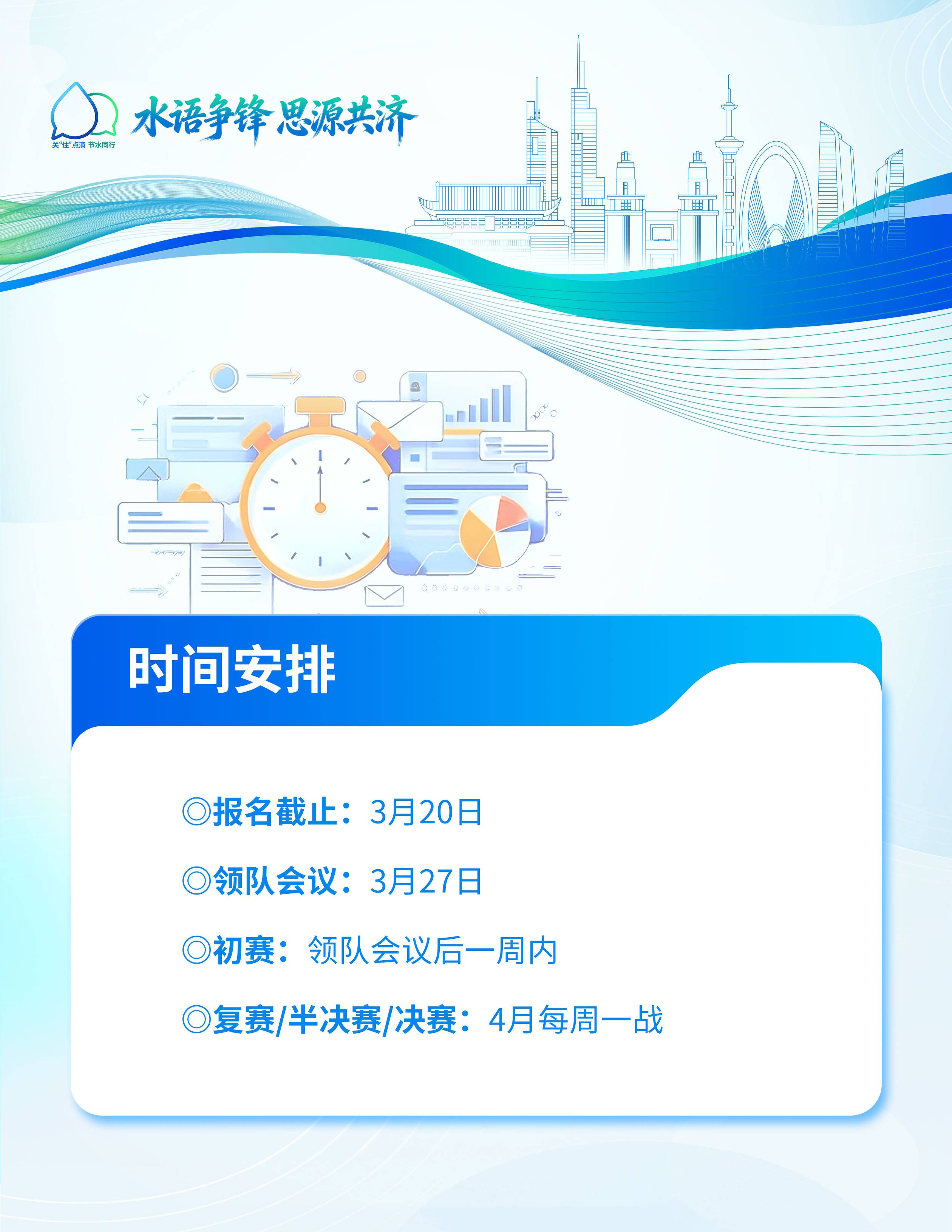 为深入践行“节水优先、空间均衡、系统治理、两手发力”治水思路,引导广大青年学生增强节水意识、了解水资源现状、投身节水实践,南京市水务局、共青团南京市委、南京水务学会联合举办“仙林杯·水语争锋”大学生节水志愿者主题辩论赛,现面向栖霞区各高校启动报名。