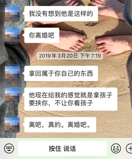 微信聊天记录显示,2019年3月20日,沈军告诉陈优丽“离吧,真的,离婚吧”。