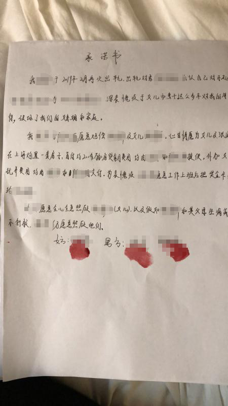 沈军、沈军前妻和陈优丽三人签订的《承诺书》 受访者供图