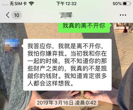 沈军表示,“我答应你,我就是离开你,我怕你嫌弃我。当初我和你在一起的时候,我不知道你的那些财产之类的,我真的不是觊觎你的钱财。我知道肯定很多人都会这样想我。”