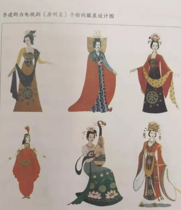 剧组成员曾回忆,为了还原唐代服饰的美轮美奂,李建群四进敦煌、七下西安,临摹了无数的壁画,甚至两个半月没回家,开始创作后更是用八开见方的图纸铺满房间,上面画满了千姿百态的剧中人物,大到服装,小到配饰。同时,她在设计时会按场景、按人物、按场次面面俱到,在画服装草图时就将搭配的发型设计好,还亲自负责面料尺寸、印染刺绣等相关工作。