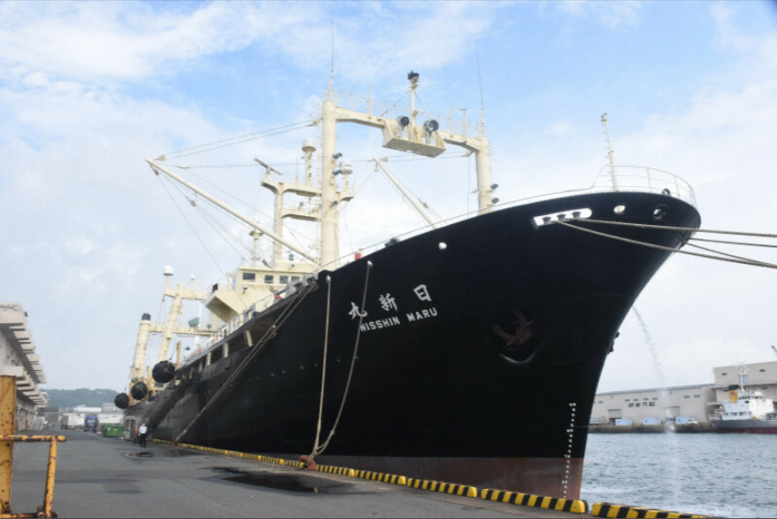 海外网7月29日电 去年(2019年)7月1日,日本在反捕鲸人士的强烈批评声中,时隔31年重启商业捕鲸,到现在已满1年时间。29日一早,5月份出港的捕鲸船团队母船“日新丸”回到山口县下关市下关港。2个月时间内,捕鲸船在房总半岛海域至三陆海域捕获了124头布氏鲸,在船内当场加工、冷冻的鲸肉、鲸皮等产品共764吨,将于30日卸货。