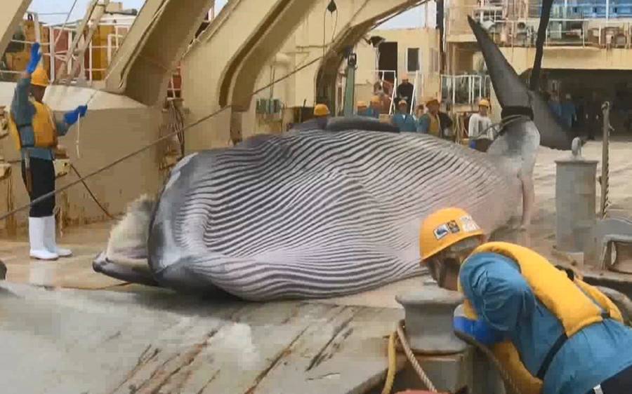 日本捕鲸船2个月捕124头鲸鱼 船内当场加工七百余吨肉皮产品