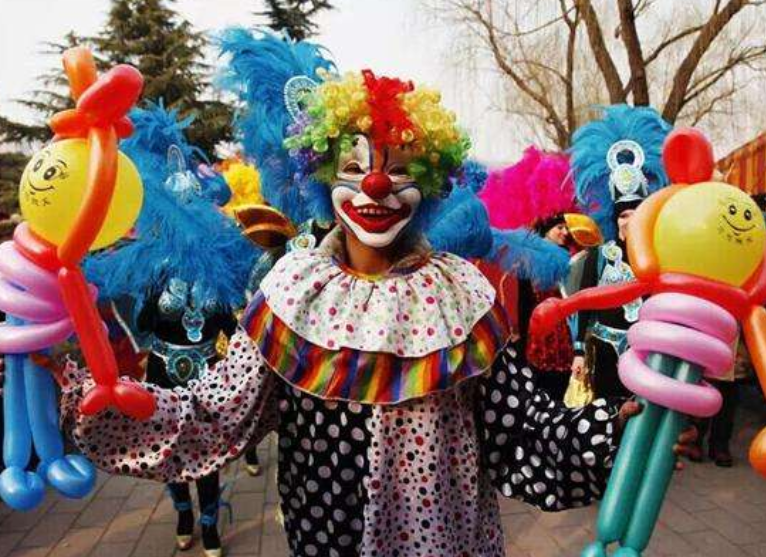 红鼻头、彩色头发、大大笑脸小丑身穿绚丽服装将各色气球在手中旋转、缠绕不同形状的花卉和小动物便瞬间出现~且看现场欢呼连连