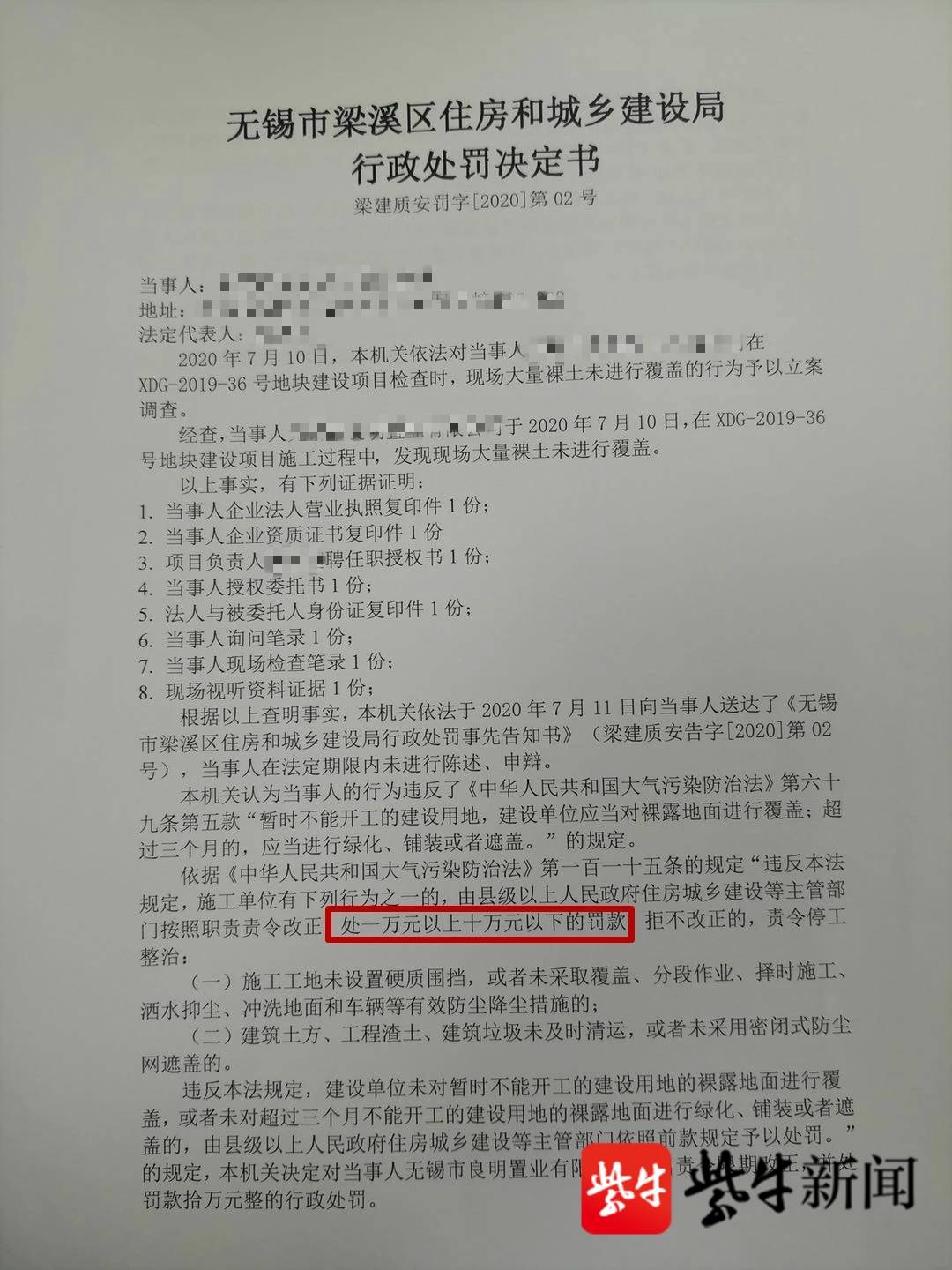 100000元!多次告知拒不改正!无锡首个工地开发商被顶格处罚!业内人士透露,如此顶格处罚较为罕见。