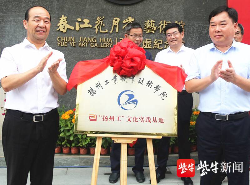 扬子晚报网9月25日讯(通讯员 李惠瑨 记者 陈咏)23日,地处长江之畔的扬州古镇瓜洲“春江花月夜”艺术馆揭牌,这是扬州工业职业技术学院与扬州市邗江区联手打造的“扬州工”文化实践基地。该校党委书记刘金存和邗江区委常委、宣传部部长黄金发为基地揭牌,邗江区向当地学校赠送了非遗图书。